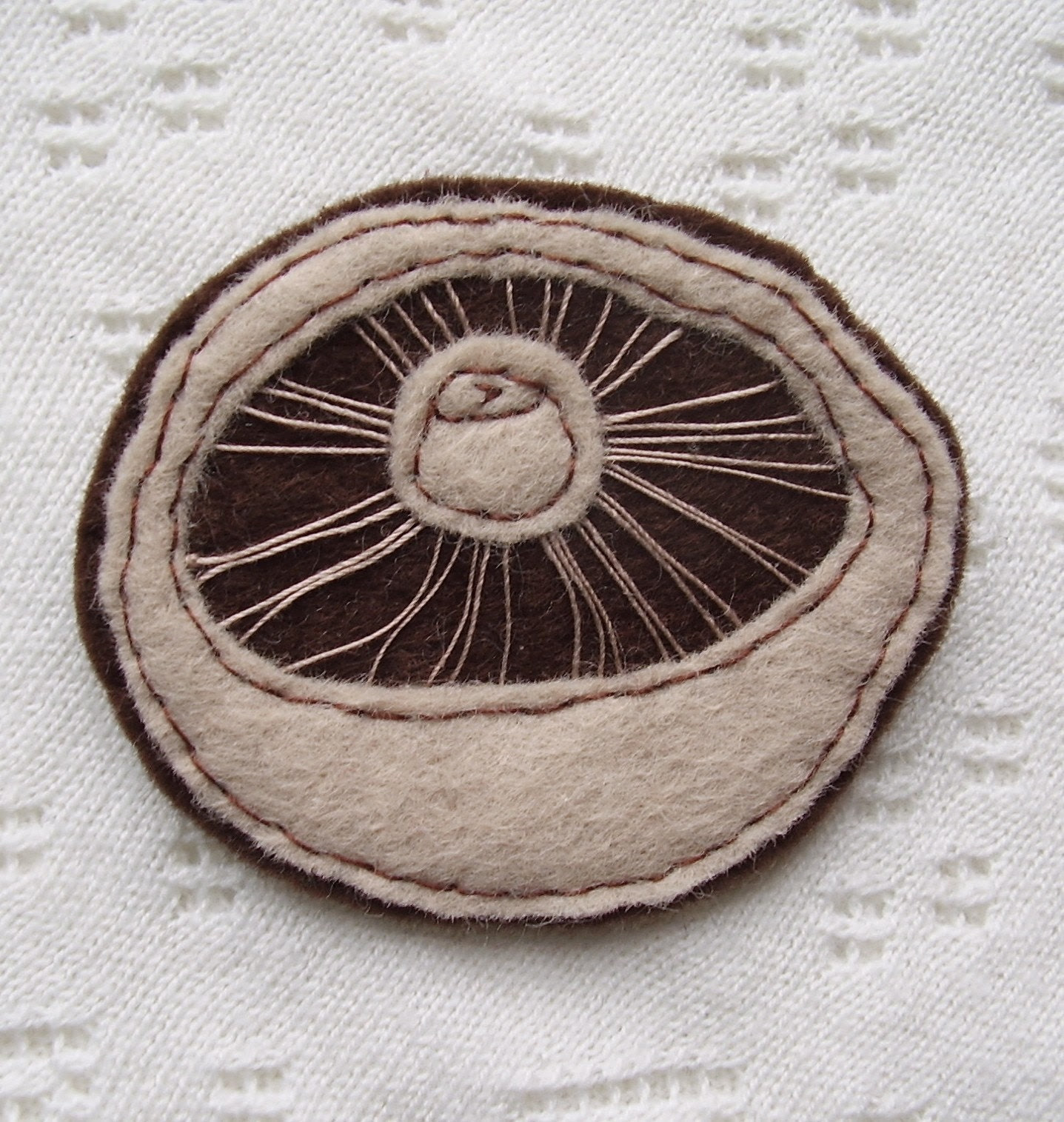 Folksy. She produces naturally simple and perfectly crafted fabric brooches. Check out her birds and meerkats too!